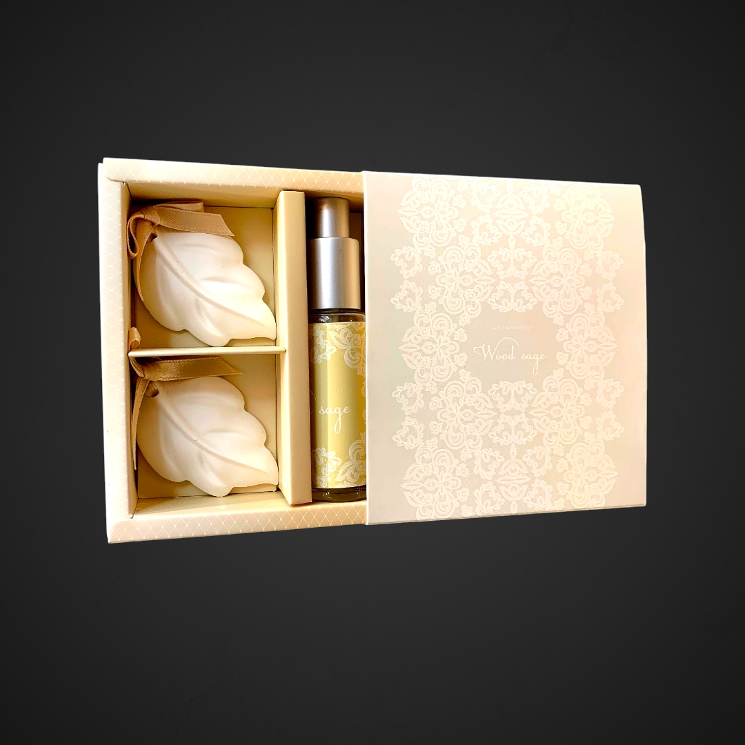 Ароматический набор Floox Wood sage «Древесный» включает в себя спрей и две фигурки. Он поможет создать уютную атмосферу в вашем доме или офисе. Аромат древесного sage наполнит пространство свежестью и гармонией.