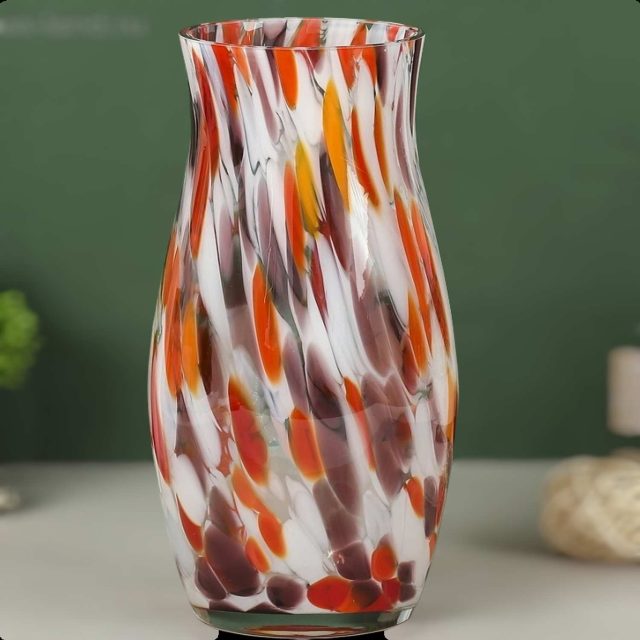 Ваза «Гранд» высотой 26 см станет прекрасным дополнением к вашему интерьеру. Красно-бело-марганцевый цвет придаёт ей уникальный и яркий вид. Эта ваза идеально подходит для создания гармоничной композиции из цветов или декоративных элементов.