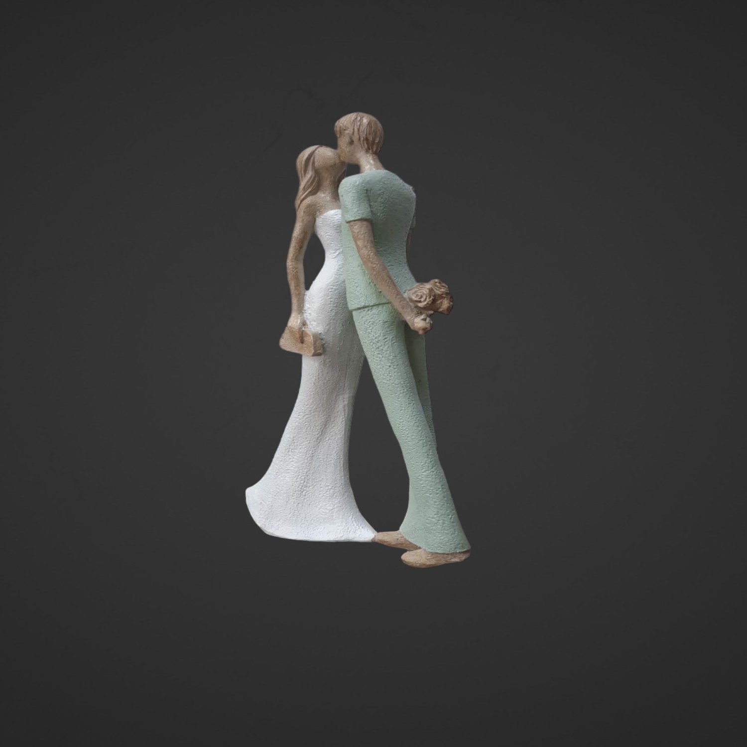 Сувенир «Влюблённые. Поцелуй» в бело-зелёных тонах станет прекрасным подарком для ваших близких. Его изысканный дизайн и нежные цвета создадут атмосферу любви и уюта. Размер сувенира — 15,5х6х29,5 см, что делает его удобным для размещения в любом интерьере.