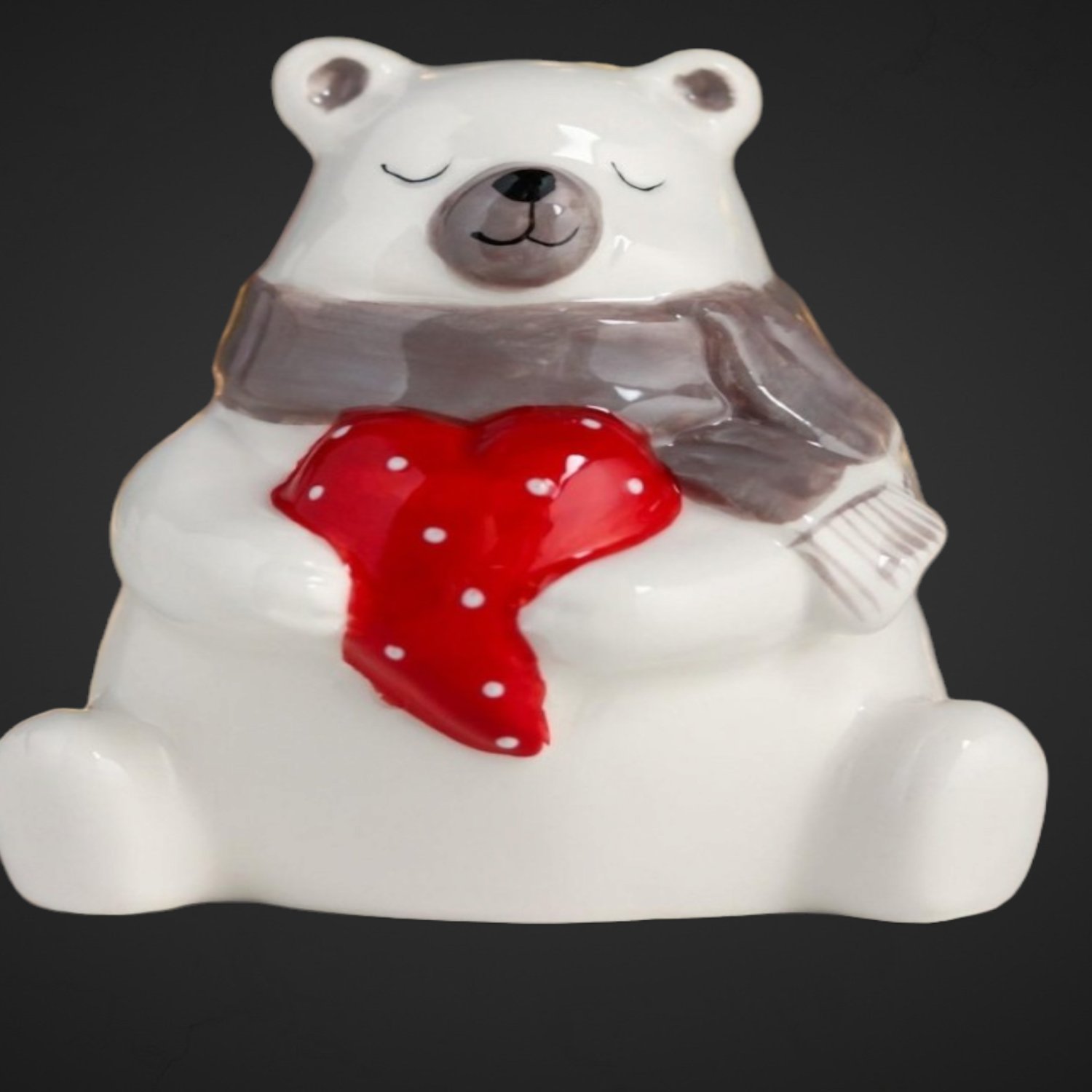 Керамический сувенир «Белый мишка, красное сердце в горошек» станет прекрасным подарком для ваших близких. Его милый дизайн и яркие цвета создадут атмосферу уюта и тепла. Размер сувенира — 9х6,5х8,5 см, что делает его компактным и удобным для хранения.