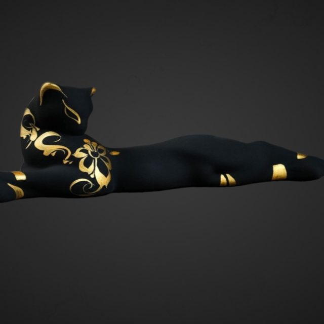 Фигура "Кошка Багира лежачая" роспись черная 7х27х10см